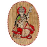 Oval Shaped Design Bamboo Hand Crafted Wall Hangings Of Godess Sarwasti Ji For Home Decor