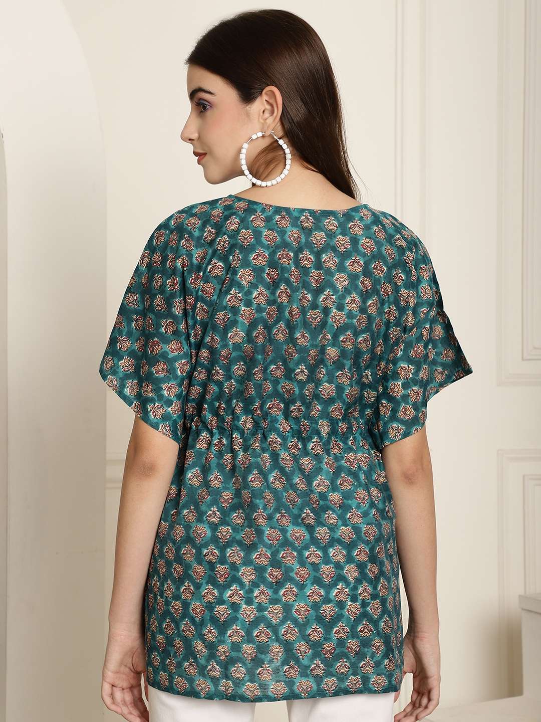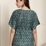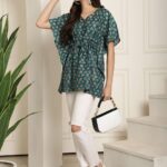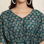 Women’s Chanderi Printed Kaftan Top With Bell Sleeve Dress (Green)