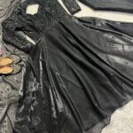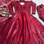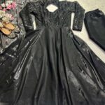 Women’s Silk Heavy Embroidery Sequence Work Long Anarkali Kurti With Pant and Dupatta Set