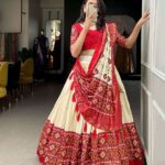 Women’s Tussar Silk Patola Print Lehenga Choli Dupatta Set