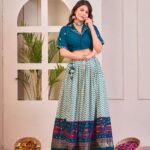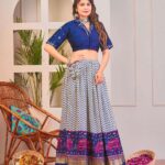 Paired with an unstitched Tussar Silk blouse and a graceful 2.4-meter dupatta featuring matching foil prints, this set is perfect for weddings, festive events, and traditional gatherings. The lightweight micro cotton inner ensures comfort all day long, while the complete package delivers both elegance and ease.